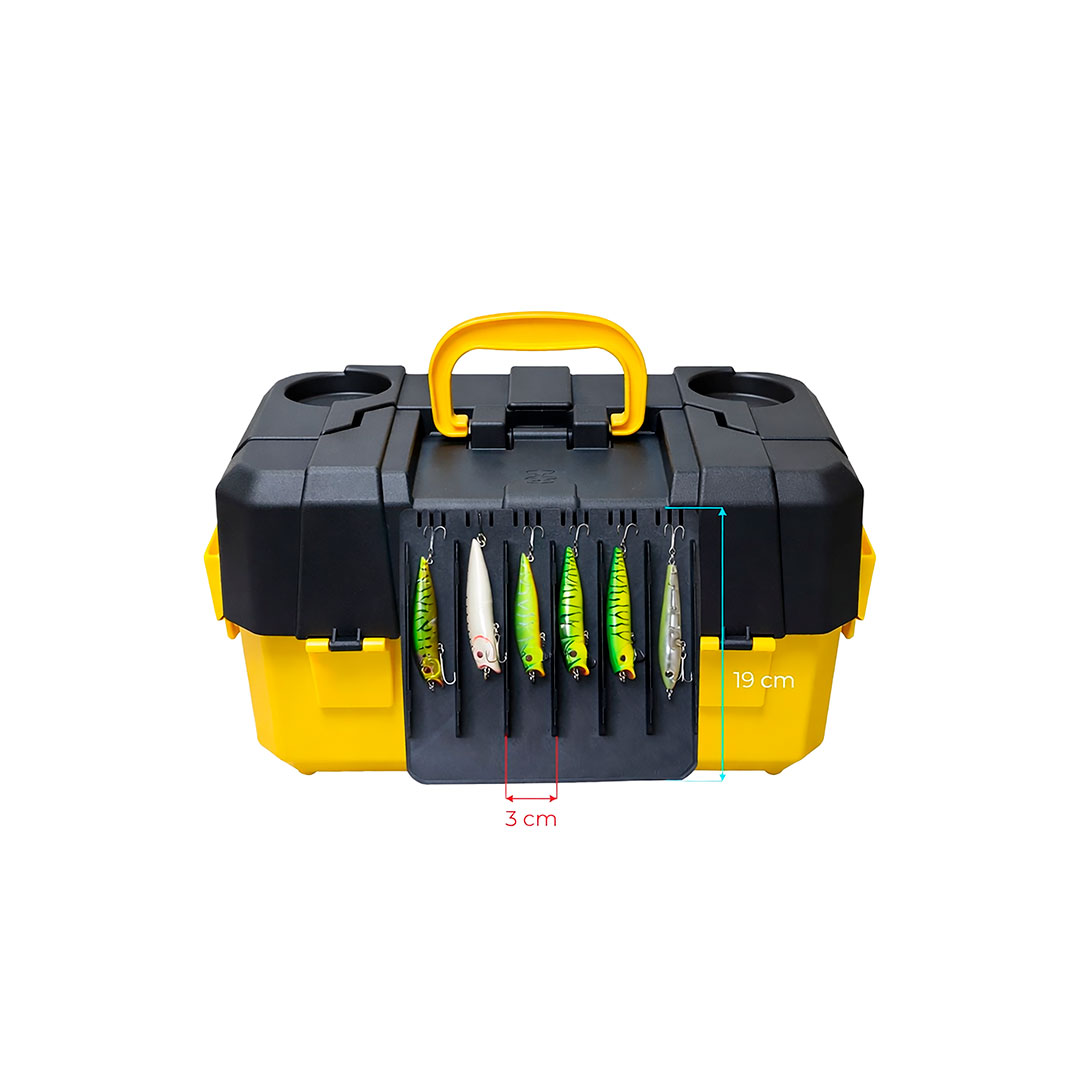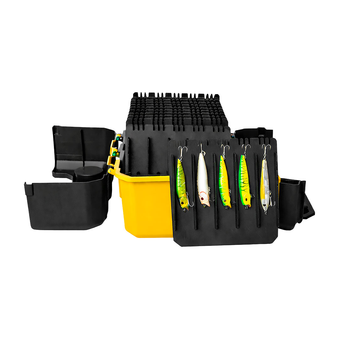 Caixa com 08 bandejas articuladas – com tampas nas bandejas superiores